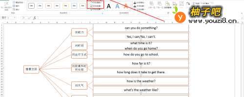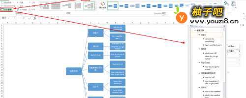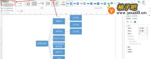 3标题输入:情景交际——选择二级分支文本框——SMARTART工具——设计——添加形状——在后面添加形状,有多少种情景交际就设置多少个二级文本框并输入标题内容。