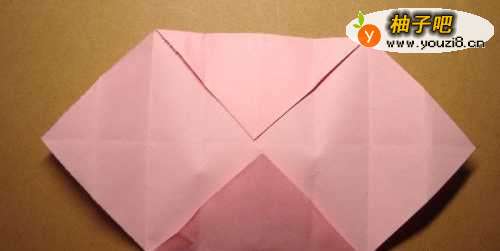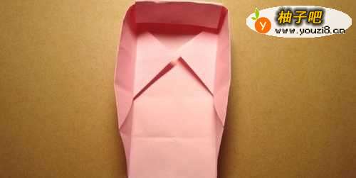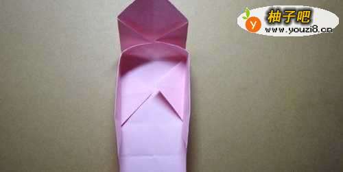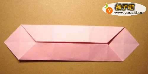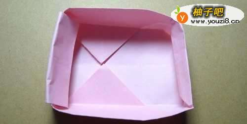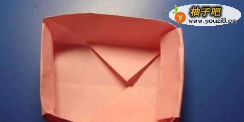7最后,把底边的三角形也进行折叠,如下图所示。这样一个装小物品的盒子折纸就做好了,大家按照步骤也来做做吧。