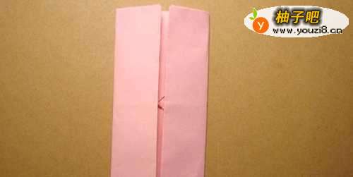 2接着,把彩色折纸的左边和右边的纸边,向中线对折一次,并压平整,如下图所示。