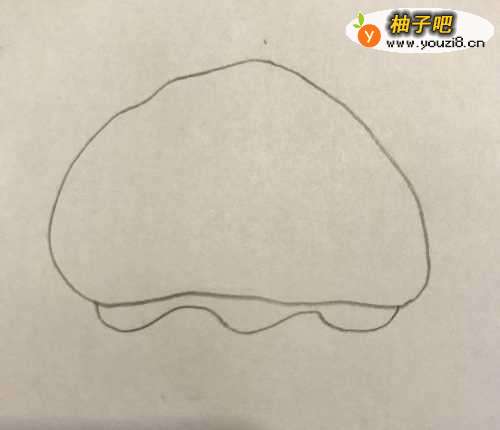 在干净的白纸上画一个扁圆的大馒头,见下图
