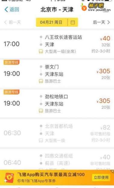 7点击开始搜索后出现各个时间段的汽车班次,见下图