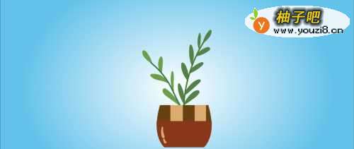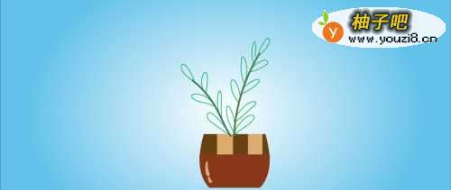 使用铅笔画出盆子的外轮廓;再用深褐色涂抹绘制出盆栽;