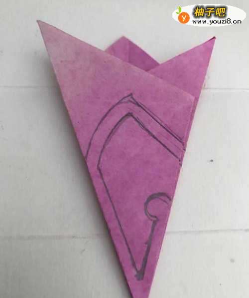5第五步 折好折痕之后 再从折痕下面开始画上简单的半朵简单的樱花部分 和它的花蕊折叠等等