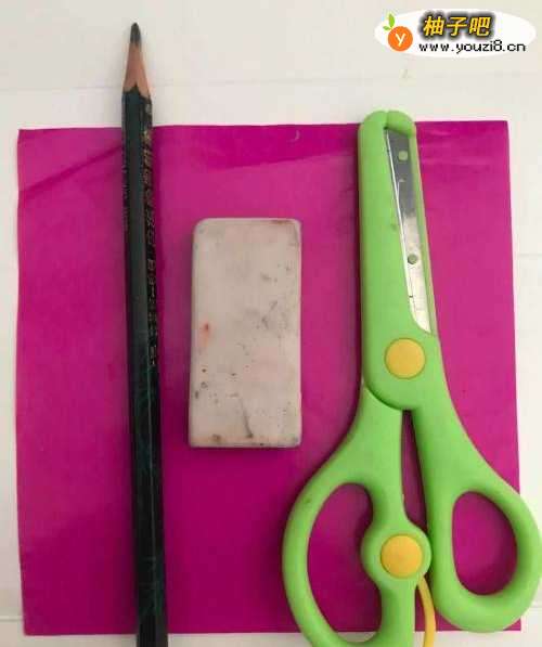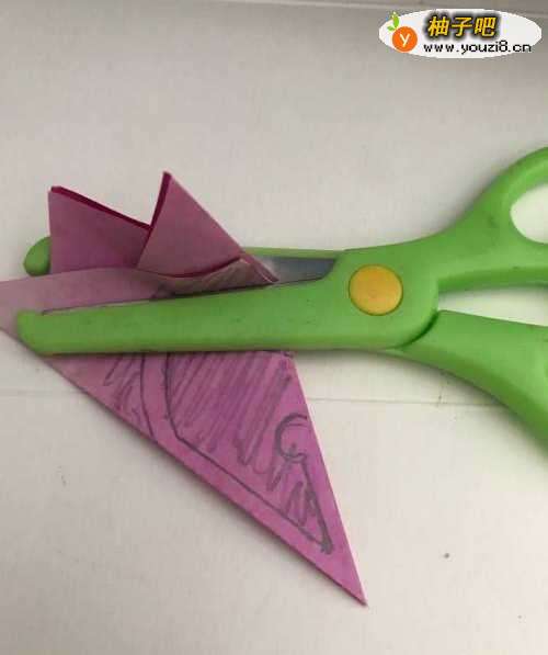 6第六步 全部画完之后 再涂实一下樱花的轮廓部分 然后拿起手工剪刀剪去上头 多出来的空白彩纸