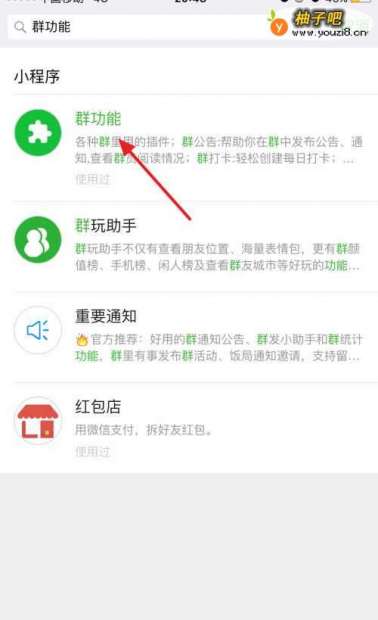 点击 发现---小程序---输入群应用,点击进入