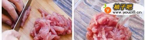 我们先把瘦肉切成丝,然后在容器里放入清水