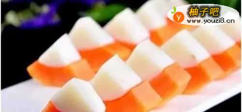 功效:木瓜拥有多种维他命B群、胡萝卜素等营养,加上所含的特殊蛋白酶,能够快速吸收鲜奶中的蛋白质。而蛋白质可以促进肌肤新陈代谢正常,保持弹性,提供抗衰老、抗氧化的全面性功能。这道浓、醇、香、滑的甜品,早上起来吃一盅,绝对是超幸福的事!