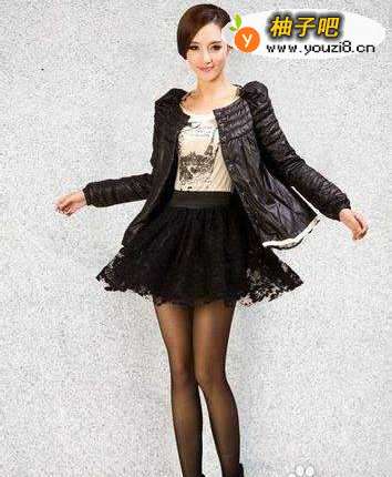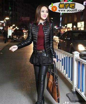 4冬季黑色是绝对的主角,但是很多人都把黑色服装穿的过于沉闷。用酒红色的打底衫搭配黑色小短裙既打破了沉闷感又不显单调,下身再搭配皮裤和靴子,很养眼的搭配。