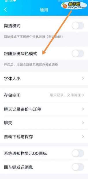4点击打开通用,如图所示找到跟随系统深色模式并点击关闭。