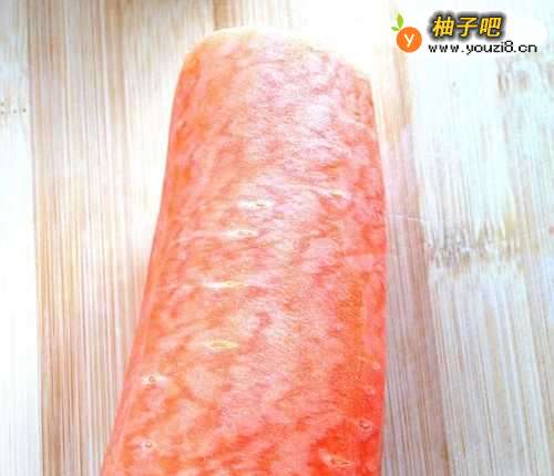 2把胡萝卜打皮,切成块备用。
