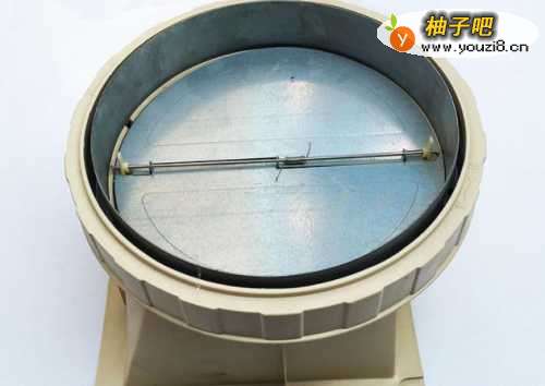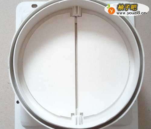 4由于逆止阀上有阀片是调整排风口大小的,所以在密封的时候烟管不要用螺丝或者钻孔去固定,以免挡住逆止阀的阀片,导致油烟不能排除出。