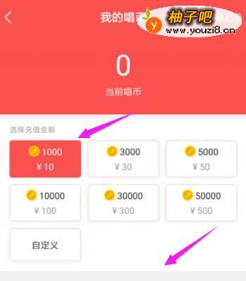 4【我的唱币】小手点击开之后,选择充值数量,点【充值】,如图。