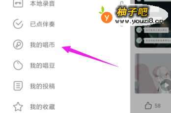 3左上方的【人头像】点击开之后,【我的唱币】小手点击开,如图。
