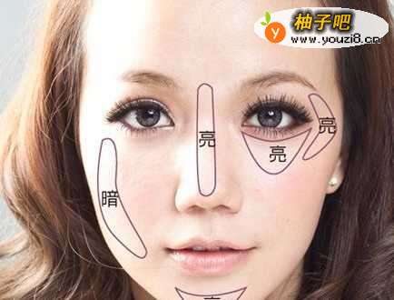 2想要妆容有立体感,我们可以打上阴影和高光。阴影选择比粉底颜色深1-2个色,打在鼻翼和脸颊两侧。高光则打在T区,高光粉可以用带有珠光效果的白色眼影。