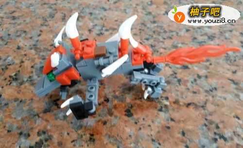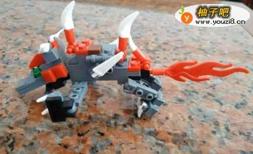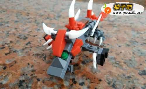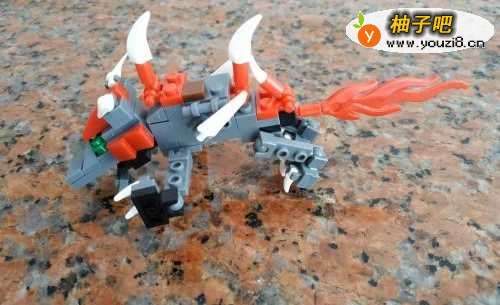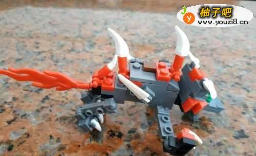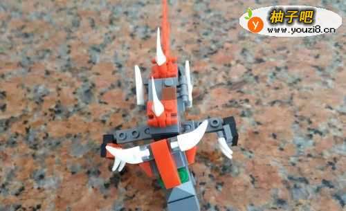 66块积木拼接成恐爪龙身上的尖角。瞧,一只威武的恐爪龙就做成了。酷吧。