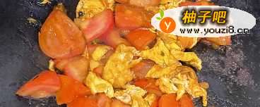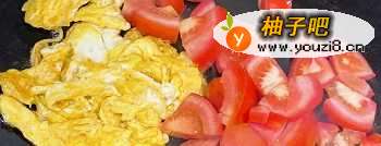 当锅内鸡蛋呈金黄色时,放入准备好的番茄,中火炒香。
