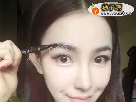 5眉笔 眉毛先用眉刷朝箭头方向梳理后用深棕色眉笔上色