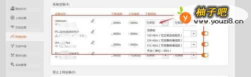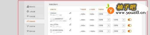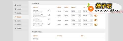 6在弹出的菜单我们可以看到我们家庭的无线路由器下连接的终端设备我们可以对终端设备进行网速的控制 如图