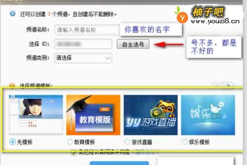 频道类型选择下(类型有四种,自己看是玩游戏还是唱歌的,根据自己需要选择);