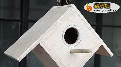 9加上挂钩。在鸟屋的最顶端的两头拧进去两个挂钩。最好提前先把孔钻好。
