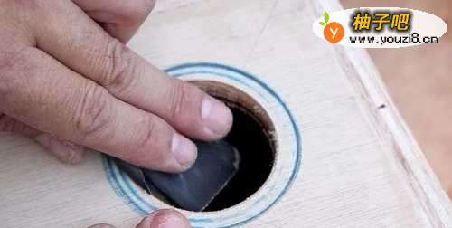 8用砂纸磨好边缘和有孔的地方。用砂纸把边缘和入口处磨光滑