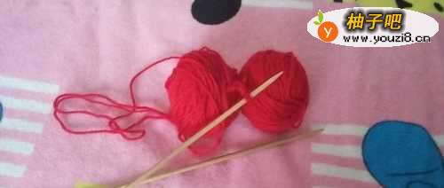我们先来学习基础。围巾只需要两根棒针。毛线用双股线编织。拿针方法:两手持针,右手针在虎口上线从食指绕过,经中指、食指下面绕在小指上。右手针可在手腕上,也可夹在腋下,右手拇指送针,食指挂线,左手退针。