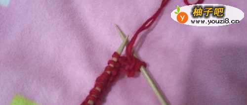3学习针法。这款围巾采用双面正针织法。两面都是正针。只要学习正针就可以了。正针,又叫下针。针法:右针从下面穿在左针的针空里,线从下绕在右针上,右针从左针针空里把这个针套挑出来挂在右针上,左针套退下,完成一针。