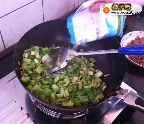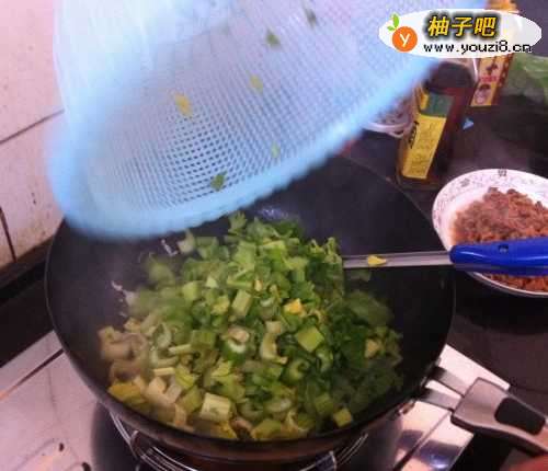 10等葱姜蒜都有点儿阅佛发黄色的时候,伴有淡淡的香味将芹菜放入锅内进行翻炒。