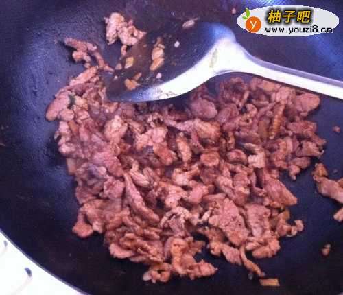 8继续翻炒5分钟,然后可以将肉先取出放在盘子中。