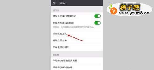4我们点击“隐私”按钮,就会看到有一个“添加我的方式”。