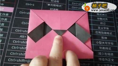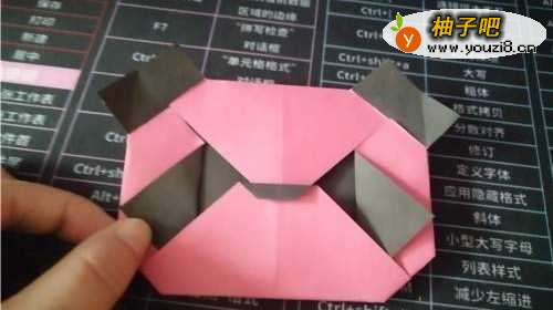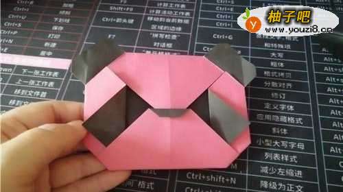 由于没有黑白色的彩纸了,没能显示出熊猫的真实色彩。小伙伴们可以自行选用黑白双色的彩纸来折,效果会更好一些。