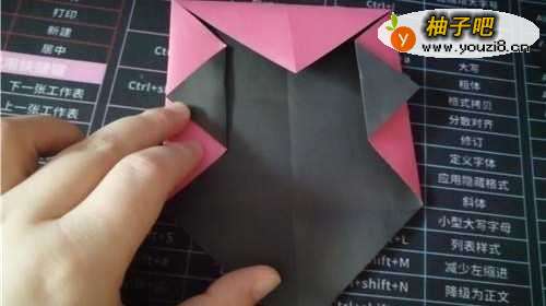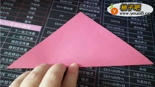 3再把中间的角向下折,把尖角折到里侧,如下图的样子。