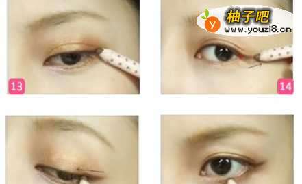 3画眼影用棉棒把下眼影的前端提亮,并注意下眼影的位置。