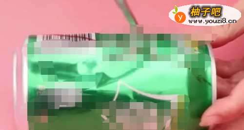 第一步、首先我们准备一个废弃的空易拉罐瓶,用记号笔在易拉罐上标注一下,再用剪刀沿着标记好的线剪开,剪开后就是这个样子了。