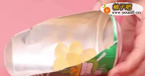 2第二步、然后我们往易拉罐里面放几粒QQ糖,再准备一根蜡烛,点燃蜡烛后再将易拉罐放在蜡烛上烧一会,直至QQ糖全部烧至融化为止。