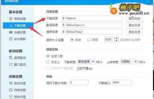 3在设置选项设置中选择下载设置功能,右侧下载目录点击更改目录,如图。