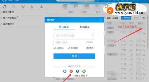 接着我们下载一首歌曲进行查看效果,点击下载要求提示进行登录,如果已经登录无需考虑,我们使用快捷登录即可,如图。