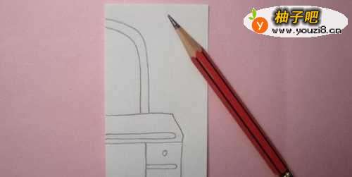 2接着,把正方形卡纸对折一半。并用铅笔在白纸上,画出梳妆台图形,根据对称图形,这里画出半个图形,如下图所示。