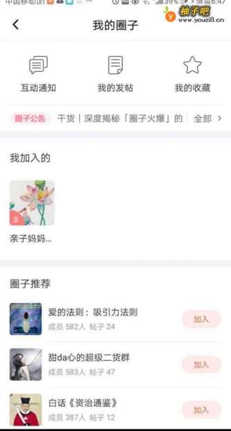 2点击中间我加入的圈子,这里有圈主已经发布的帖子,接着点击下方的加号。