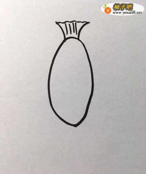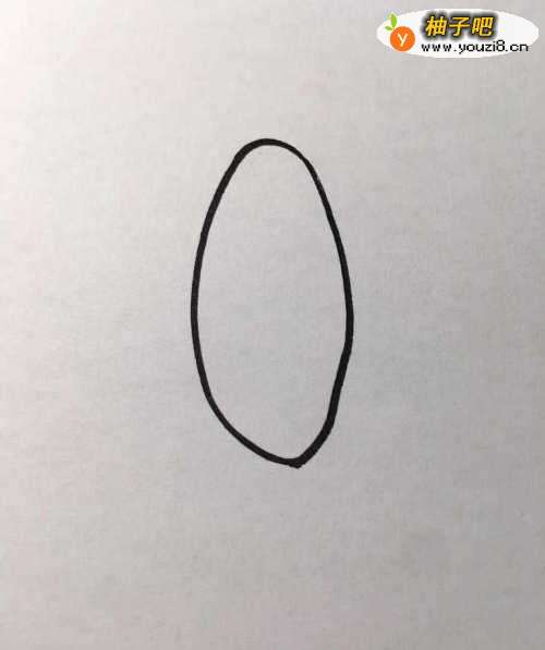 4在椭圆形下侧顶端左右各画一条向外张开的曲线。
