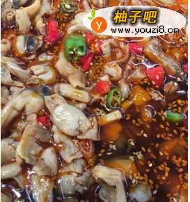 4紧张,不知道该说啥。这就是腌泡的扇贝肉。红油可以自己添加到这上面去。