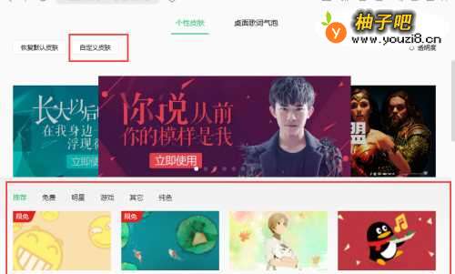 4进入到皮肤设置之后可以看到两种选择,一个是自定义皮肤,另一种是QQ音乐给大家的皮肤。对于我们这种穷人来说如果不想用自己的图片那自然就是去免费里面找了。免费的皮肤不多,但是限免的会经常更换。