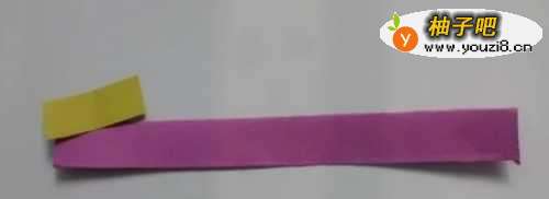 4将花瓣按次序正反两面贴在紫色纸条上,最后将紫色纸条末端粘上。