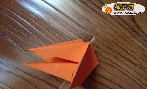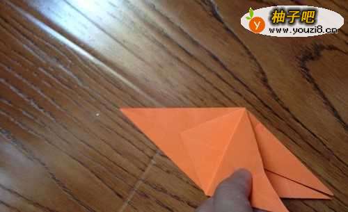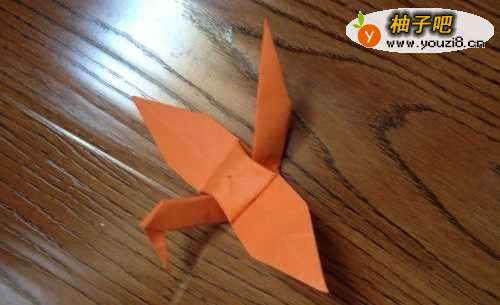 2摆翅千纸鹤:直接将一角内凹做成鹤头就完成了,用手拿住头和尾进行收缩拉伸,千纸鹤的翅膀就会摆动。
