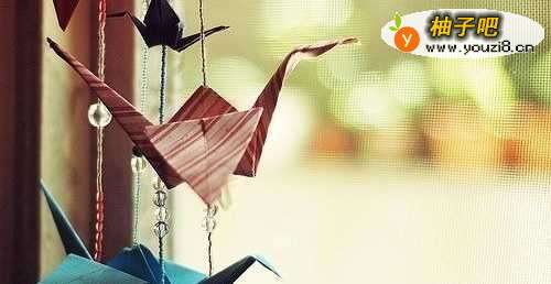 3普通千纸鹤:普通千纸鹤比较固定,可以折多个,如何用绳子串起来,可以当装饰品用