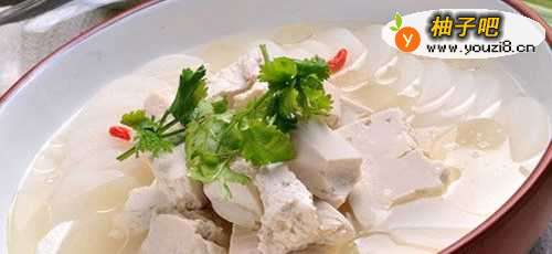 原理:豆腐含大量钙质,若单吃,其吸收率较低,但与富含维生素D的鱼肉一起吃,对钙的吸收与利用能起更佳效应。