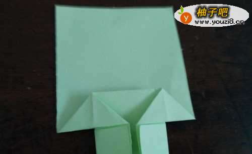 3翻到另一面,我们把里边的角分别向下折,如图二。