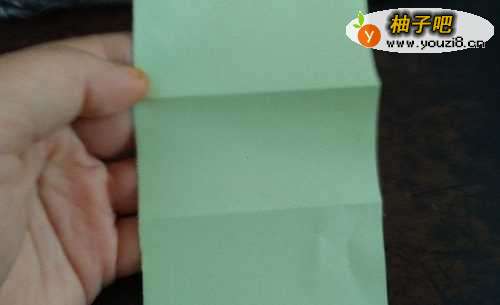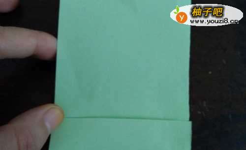 我们先把彩纸的中间对折,再把下侧的边向着中线对折,如图。