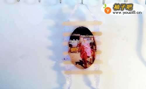 3把它贴到合适的长度,在下面留一条缎带,把冰球棍贴得比照片的长度稍长一点。