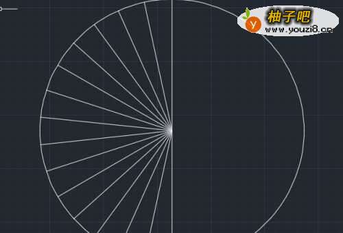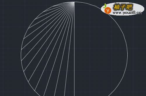 6再次利用阵列命令,用全部主线作为对象,仍以圆心为中点,填充整个对象。